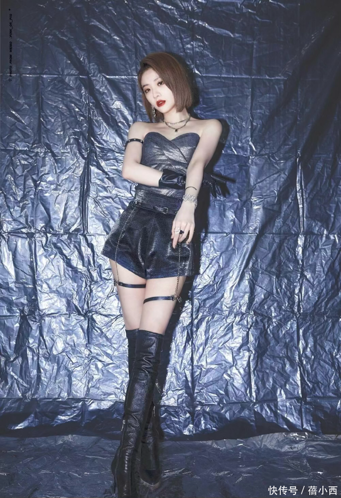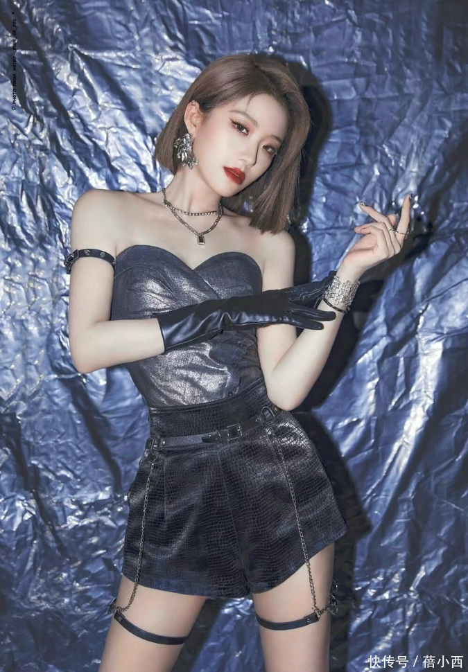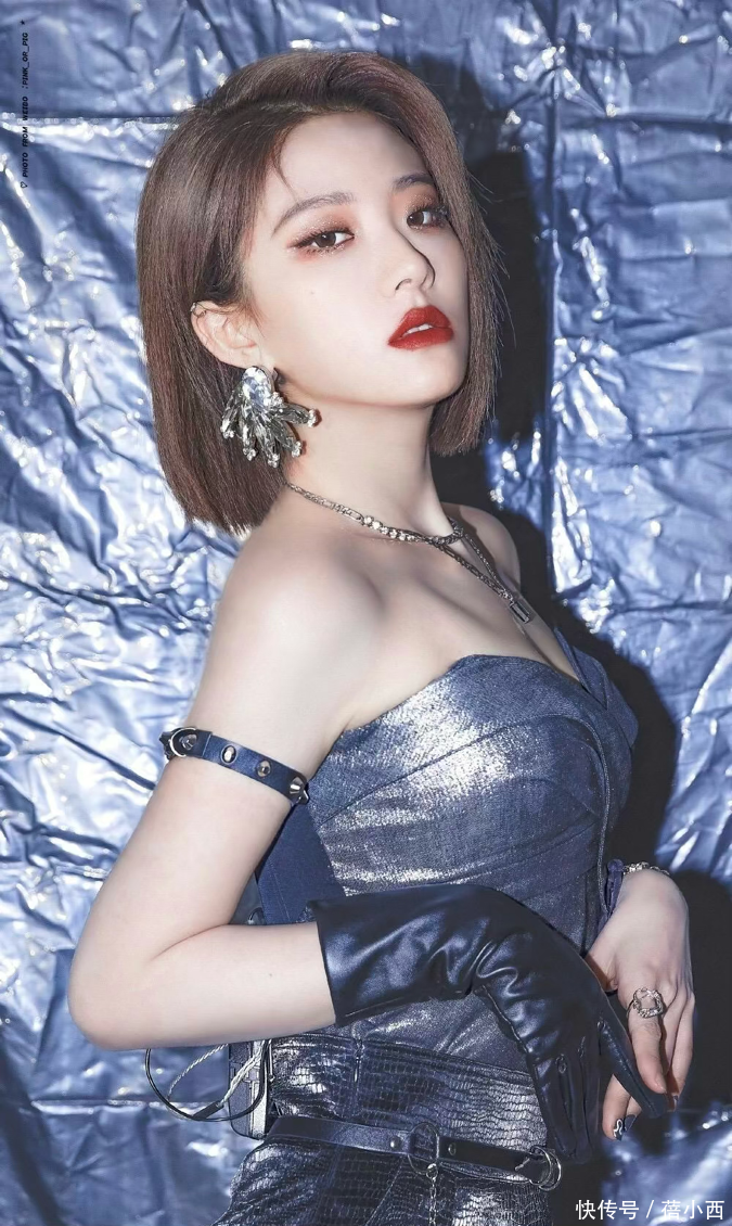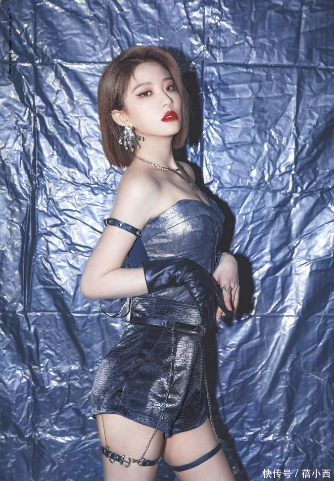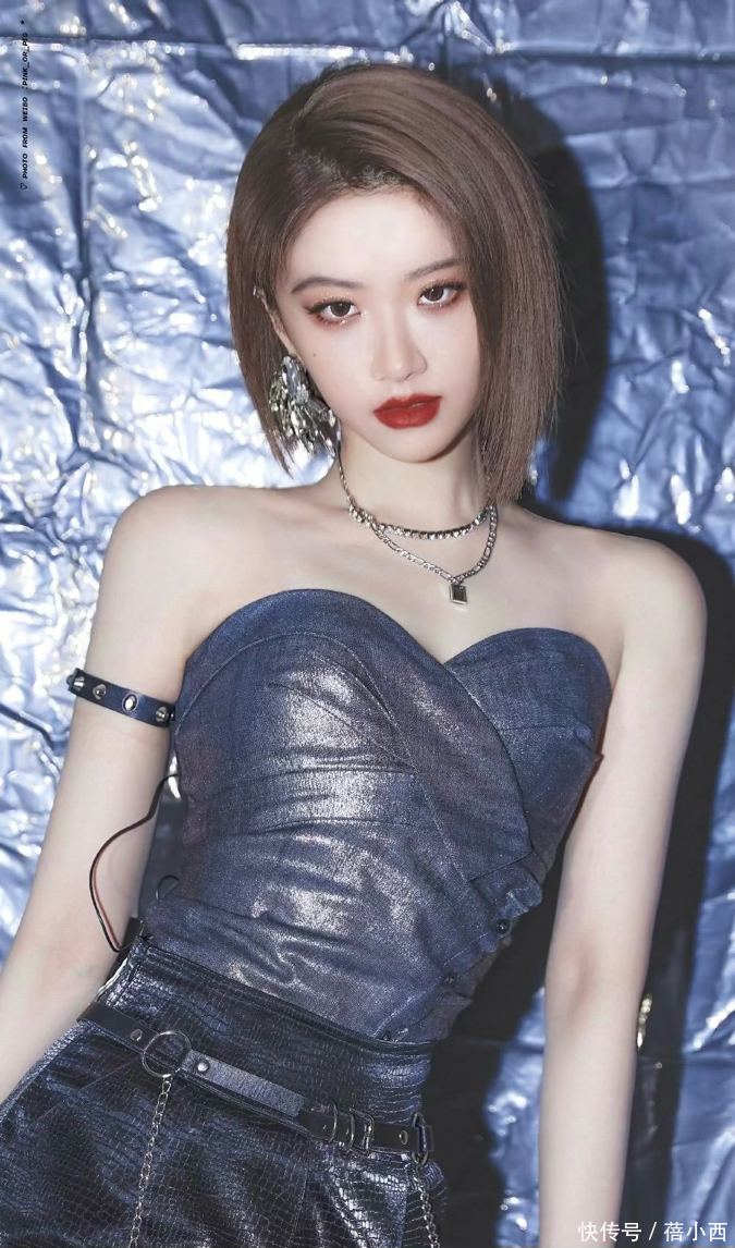 喻言还颇有先锋作风,在腿上加强了环形绑带,让肉欲感更昭着。举座的状态口舌常丰润的,喻言最反差的是搭配了超短发。